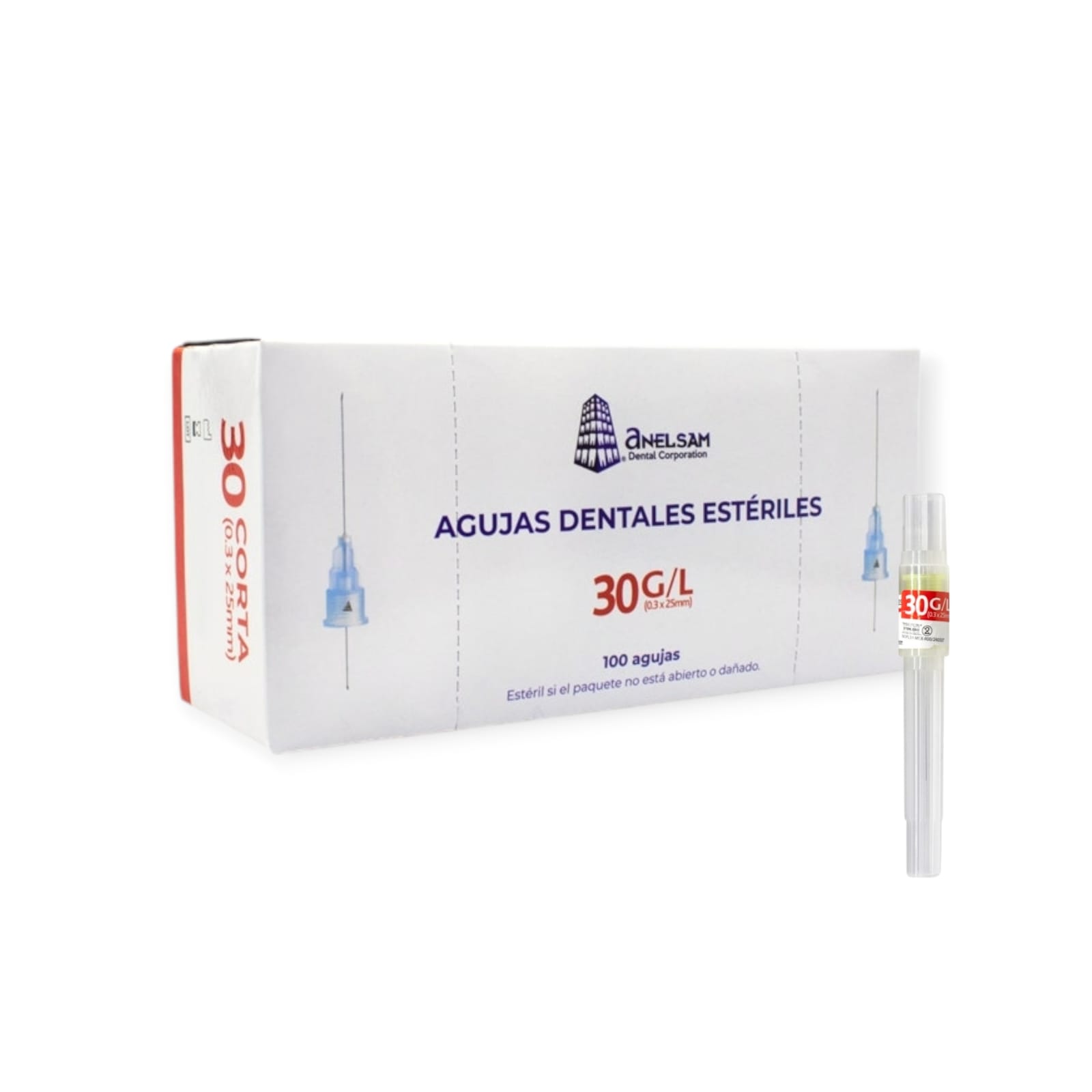 AGUJAS DENTALES ESTERILES 30 CORTA 03X25MM ANELSAM